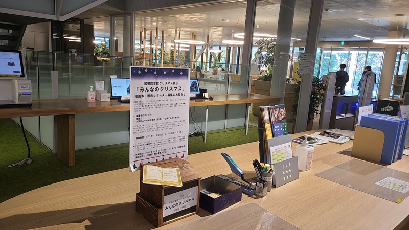館内に設置するクリスマスツリーの飾りつけなど、展示をお手伝いいただける場合は、11月28日、15時に18号館2階、図書館入り口部分にお集まりください。